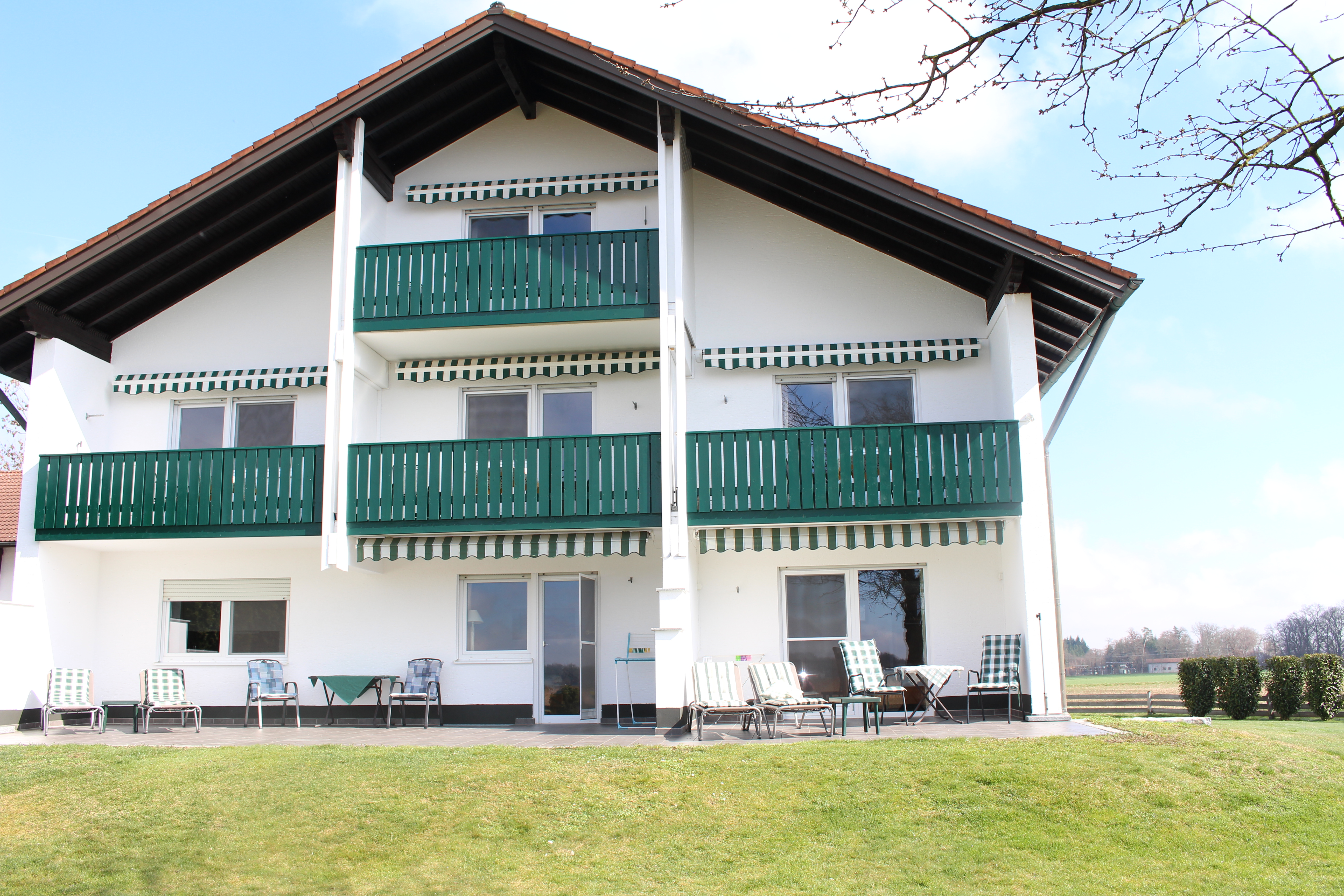 Gleich ob Sie mit Balkon oder Terrasse buchen, Sie werden überall mit einem Blick in den schönen Garten und in die weite Natur belohnt. Unsere Terrassen und Balkone auf der Südwestseite haben alle eine Markise, selbst bei großer Hitze können Sie dort im Schatten verweilen. Die Ausstattung ist sehr hell und freundlich eingerichtet mit Liebe zum Detail.