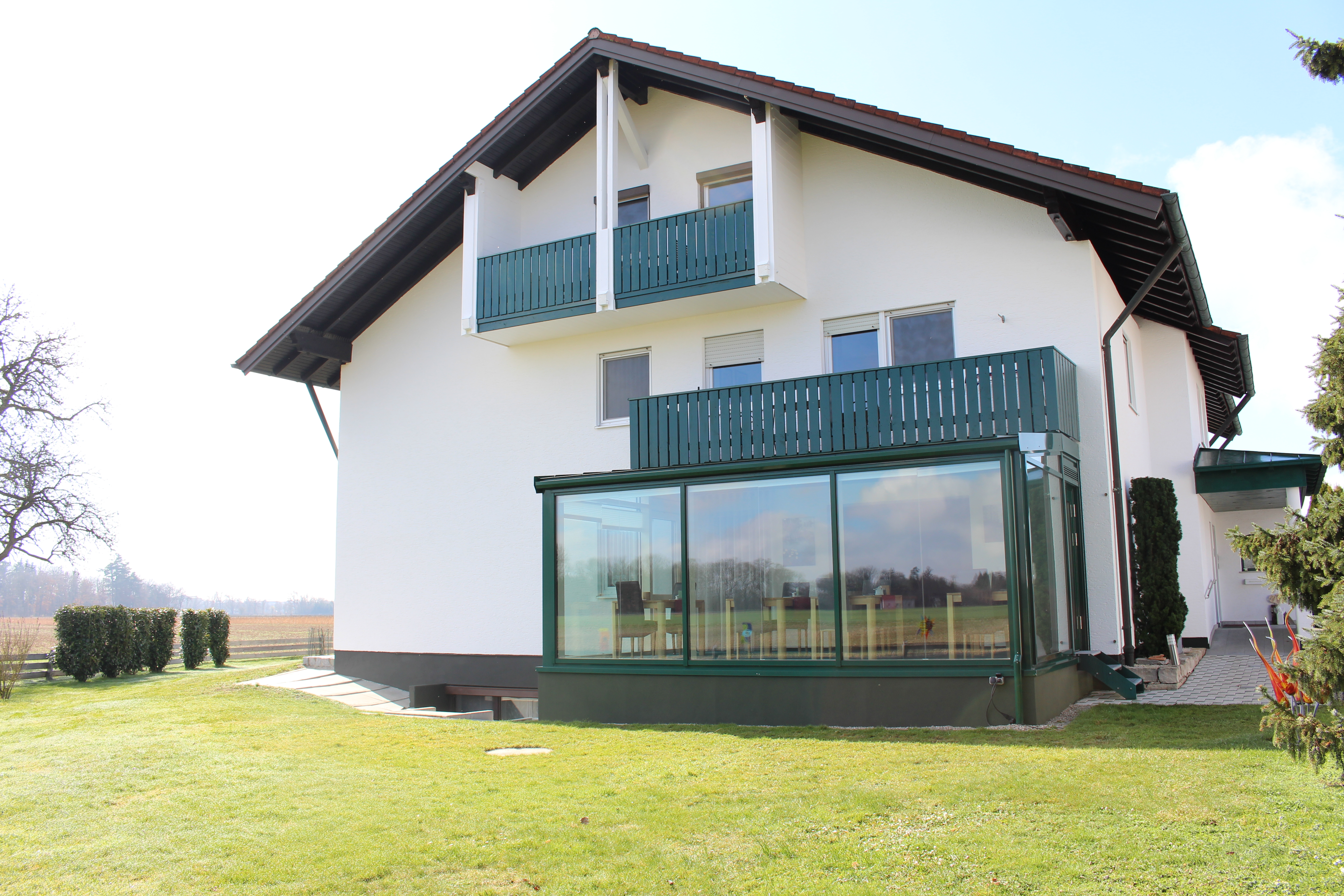 Einzigartig ruhige Lage! Kein Nachbar der stört, keine Hauptstraße führt bei uns vorbei, das ist unser wunderbarer Vorteil. Unsere Gäste schätzen dies sehr, und lieben es auf dem Balkon zu verweilen um einfach die wunderschöne grüne Natur zu betrachten, dabei den Vögeln zu lauschen, und auch Rehe mit ihren Kitzchen, und Fasane zu beobachten. Bei uns ist die Natur noch Natur, umgeben von herrlich frischer und gesunder Luft. Genießen Sie den Sonnenaufgang sowie den Sonnenuntergang bis hin zum letzten Strahl, solch einzigartig schöne Momente können Sie nur außerhalb eines Ortes wie bei uns erleben.